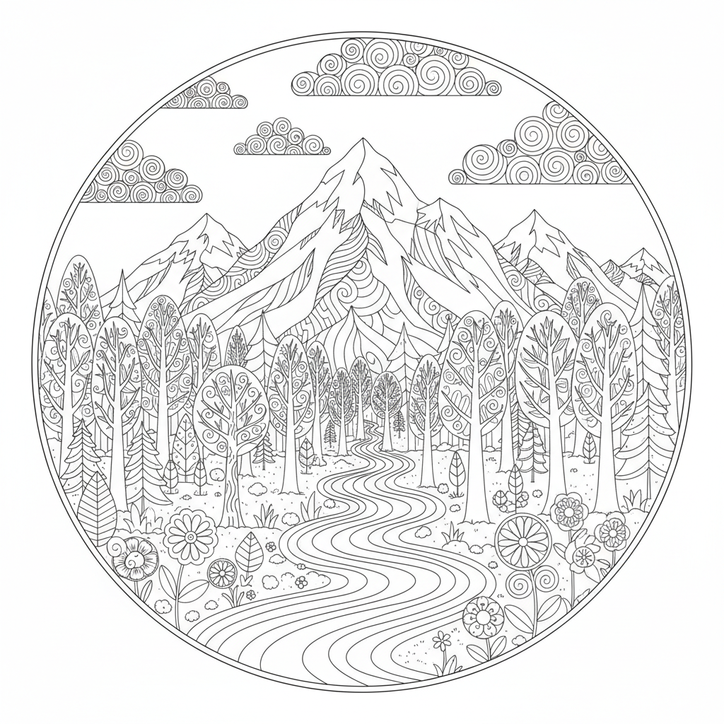 - Nature Coloring Pages – Peaceful scenes and natural elements to reconnect with the present moment